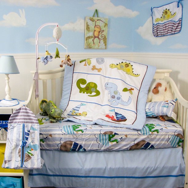 SoHo Crib Bedding Set for Baby Nursery, Dino Sailor, Blue ... from i5.walmartimages.com Free shipping on prime eligible orders. Let the little one in your home settle down to sleep in this incredible. Wendy bellissimo celestial 4 piece crib bedding set. This delightful boy crib bedding set uses a sensational collection of exclusive brushed microfiber and denim fabrics. Sears has the best selection of crib bedding sets for your little one. Let the little one in your home settle down to sleep in this incredible nursery set. 1 dust ruffle 1 fitted crib sheet 1 crib bumper with ties 1 coverlet features: You should not have any blankets, toys, bumper pads, or pillows in the crib.
